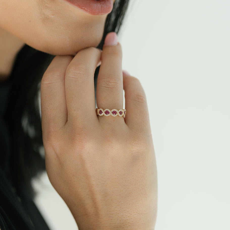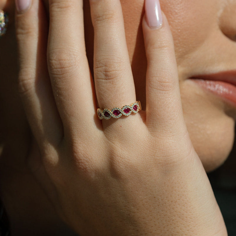 This radiant ruby and diamond ring is perfect for adding a splash of vibrant color and elegant sparkle to any outfit.